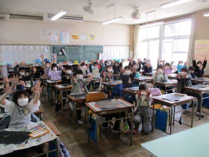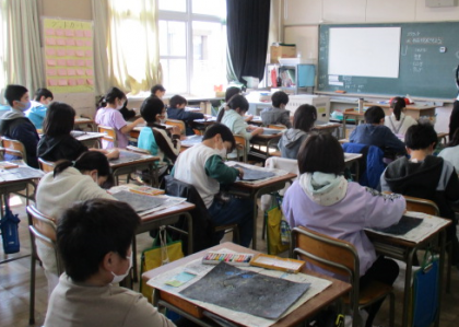 図工の授業で「スクラッチアート」に取り組んでいます。