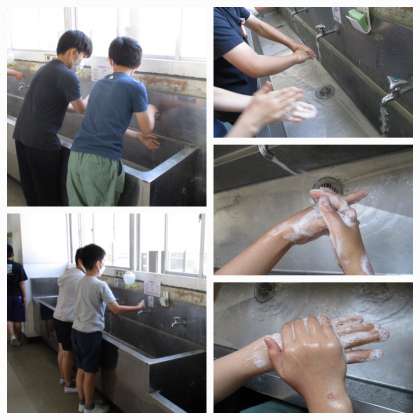 給食前の手洗いタイムです。今日もすてきなあわあわゴッシーさんがたくさんいました。しっかり石けんを泡立てて、手や指のすみずみまできれいにしていきます。感染症がまだまだ心配ですが、手洗いは、感染予防の基本。ばっちりです。
