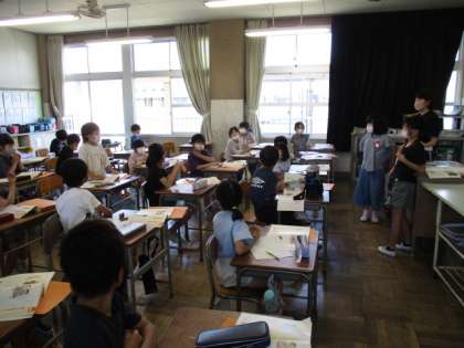 優しい行動とは、その時の場面や状況、相手の立場にもかかわってきます。相手に対する本当の優しさについて、役割演技をしながら考えました。演技をしながら自然に出る言葉のやり取りを聞いて、意見も出されました。相手にとっての優しさを考える時間となりました。