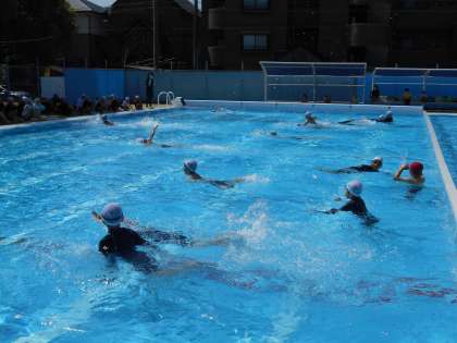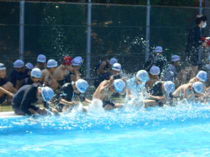 体育で水泳がありました。1年ぶりの水泳にドキドキ、わくわくしながら入りました。今回は第1回目ということで、自分がどれだけ泳げるのかを試しました。これからの練習で、少しでも長く、上手に泳げるようになるといいですね。
