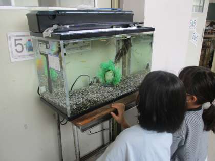 6/10 5年情報児童「メダカの観察」 公開日 2022/06/10 更新日 2022/06/10 委員会活動 5年生では、理科の授業でメダカを育てています。 授業のために、観察をしていたら、たまごからもう出てきているときがあります。
