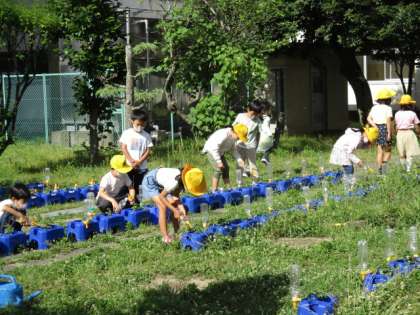 6/13 2年生 ついに花が 公開日 2022/06/13 更新日 2022/06/13 2年生 3日ぶりの水やりに来たら、「ついに花が・・・!」「つぼみも出てきた!」あちこちから歓声が聞こえてきました。葉っぱも茎も土も、たくさん水をもらって生き生きです。