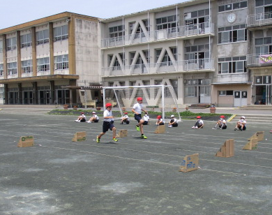 体育の授業で、ハードル走に取り組んでいます。今日は、調子よくハードルを走り越えることができるように練習し、タイムを計測しました。リズミカルに走り越えられると、ぐんぐんスピードに乗ってきます。最後までいいスピードで走りきることができてきました。
