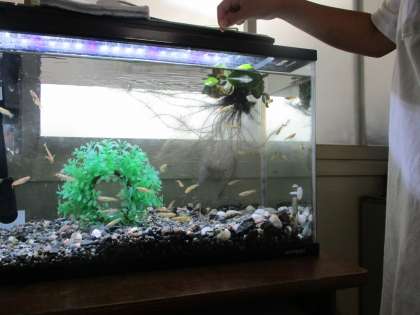 5年生のろうかに,メダカが送られてきました。