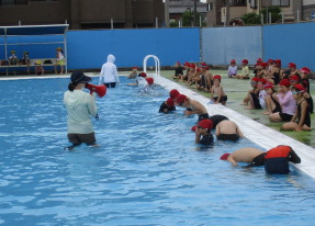 3時間目と4時間目には、水温と気温があがってきて、水泳の授業を行うことができました。1年生は、今日は顔を水につけることに挑戦!5秒を目指して頑張っていました。隣で泳いでいる5年生のおにいさん、おねえさんの姿を見て、「泳げるようになりたいな〜」とつぶやいていました。