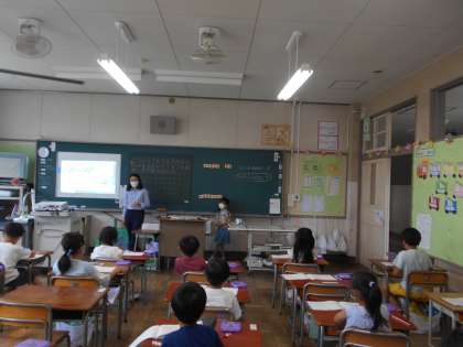 「5から2ふえると、7!」「5たす2は7!」みんな、自信まんまんで答えを求めていました。授業を見に来ていた先生からも、ほめていただけましたよ。