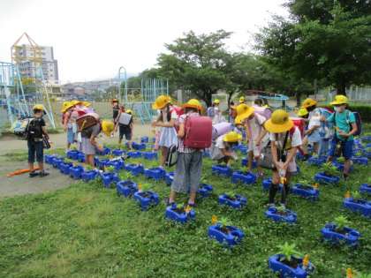 6/23 3年生 大盛況 公開日 2022/06/23 更新日 2022/06/23 3年生 しばらく雨で、水やりを控えていましたが、今日は久しぶりに鉢のところに集まってきました。大盛況です。「大きくなったよ!」「小さい双葉が出てきた!」「水がどんどん葉っぱや土に吸い込まれていく!」朝活を楽しんでいました。