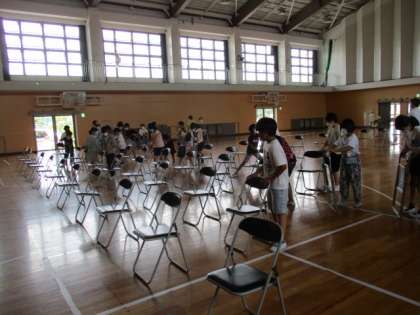 6/23 5年生 5年生に任せて! 公開日 2022/06/23 更新日 2022/06/23 5年生 今日は午後からキャンプ説明会があります。5年生が会場準備をしました。190個ほどの椅子を並べていきます。みんなてきぱきと動いて椅子を運んでいきました。そして、並べ終わった後の椅子のきれいなこと!丁寧な仕事ぶりに、頼もしさを感じました。