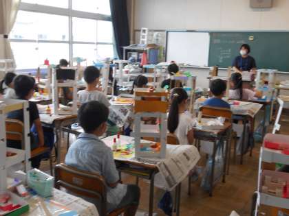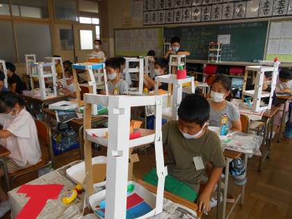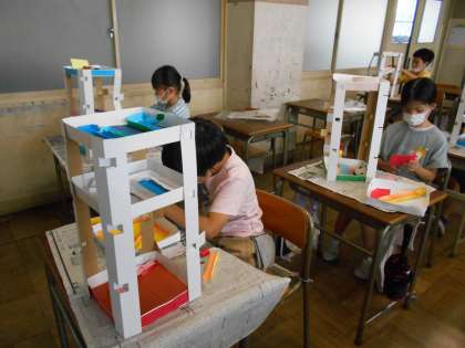 図工の「コロコロガーレ」の制作を続けています。今年の作品は大がかりな4段構成。コースの工夫をたくさんすることができます。一人ひとり、どんなふうにビー玉を転がすとおもしろいかを考えながら、思い思いにコースを作っていました。完成が楽しみです。