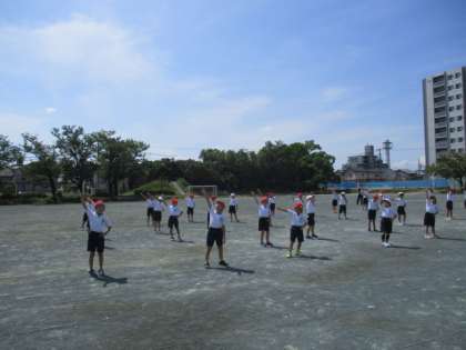 9/13 1年生 外で踊ってみたよ 公開日 2022/09/14 更新日 2022/09/14 1年生 体育の授業で、体育祭の表現を曲に合わせてやってみました。みんな振り付けも覚えて、楽しそうに踊っていました。