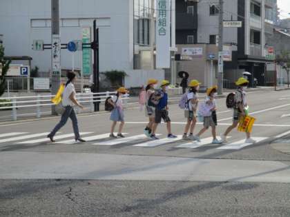 今日も夏のような日差しの朝となりました。今日も地域の皆様、保護者の皆様に見守っていただきながら、神山っ子たちが元気に登校してきました。皆様の黄色い旗、班長さんの黄色い旗でしっかりガードされ、今日も安全に登校完了できました。朝早くからありがとうございました。