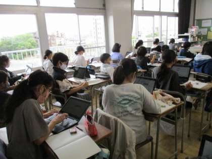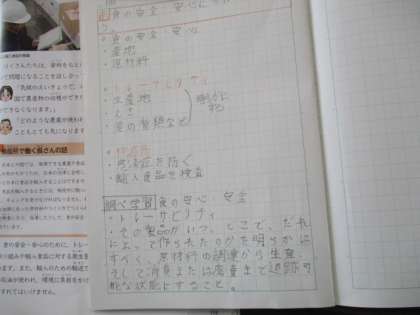 社会の授業で「わたしたちの生活と食料生産」を学習しています。今日は、食の安全・安心への取り組みについて、chromebookを使って調べ、ノートのまとめました。