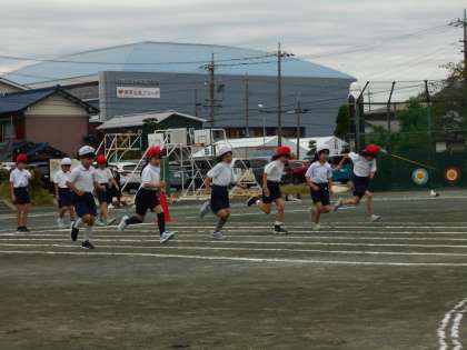 10/6 2年生 体育祭予行練習 公開日 2022/10/06 更新日 2022/10/06 2年生 体育祭の予行練習を行いました。今日の練習も、まるで本番!というくらい、一生懸命取り組みました。50メートル走では、力強く走る姿、表現運動では、リズムに乗って、楽しく、元気いっぱい演技する姿が見られました。本番も、仲間と一緒に、力いっぱいがんばります。