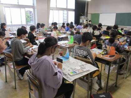 10/7 5年生 図工 ミラクル!!! 公開日 2022/10/07 更新日 2022/10/07 5年生 図工の授業で「ミラクル!ミラーステージ」の作品を作っています。今日もかなりの集中力で作っていて、教室は静まり返っていました。鏡の性質を活用して、イメージした世界観をさらに広げて表現していました。奥深いです。