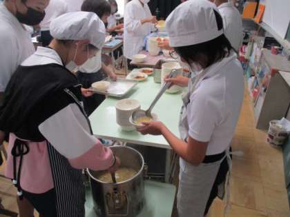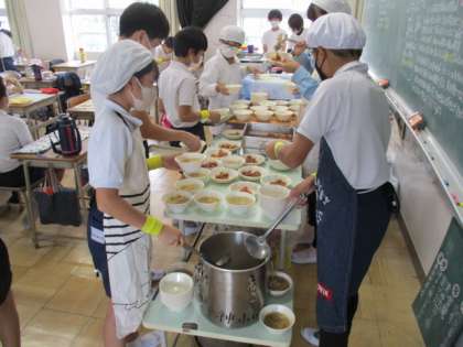 写真は6年生の準備の様子です。午後から体育祭を控え、そわそわ気味ですが、しっかり栄養をつけて頑張ります!今日も笑顔で「いただきます!」