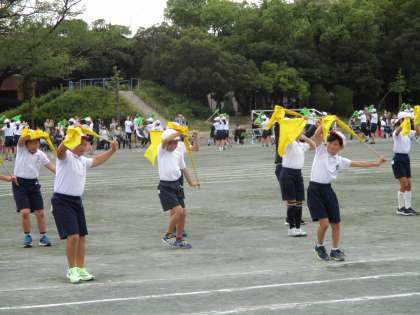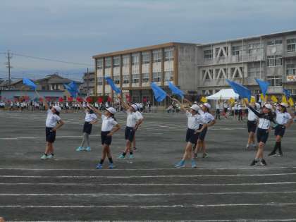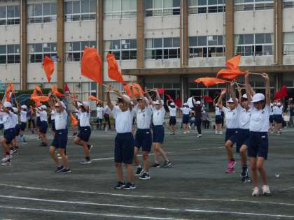 午後から行われた体育祭では、嵐の「GUTS!」に合わせて踊りました。9月から1ヶ月間、毎日練習してきた成果を発揮しました。大きく、息の合った演技を力を合わせて見せてくれました。