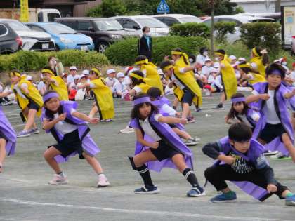 4年生の「神山んちゅぬ宝」は、心地よい音楽とのびやかな動きがぴったりとマッチし、見ている人が心地よくなるような演技でした。