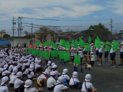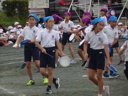5年生の「GUTS! 〜勇気の応援歌〜」は、息の合った演技がすばらしく、あざやかな旗の動きと旗を振る音に、勇気をもらえました。