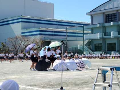 本日晴天のもと、中部中学校体育祭が開催されました。前半はリレー種目や競争遊戯、後半は、表現演技が披露されました。1年生全員による「中中ソーラン」続いて、2,3年生女子によるダンス「逢愛〜つなぐ〜」、最後に2、3年生男子による集団演技「中中魂」ともに、迫力、力強さとたくましさ、音一つでそろう美しさ、笑顔、そして熱い思いがあふれ、感動を呼びました。神山っ子卒業生を含む中中生の大きな成長を、会場全体がとても嬉しく感じたことと思います。