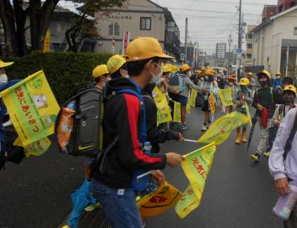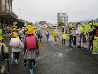 今日はあいさつの日です。今日は5年生の有志の子たちがあいさつ運動に参加してくれました。校門では、できたてほやほやの「あいさつの旗」が並び、あいさつロードができていました。たくさんの「あいさつの旗」にちょっとびっくりした表情で校門を入っていた子たちも、いつも以上に元気にあいさつをしてながら、あいさつロードを通っていました。朝一番の元気なあいさつで、心あったかエネルギーチャージ完了です。