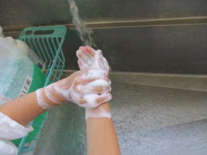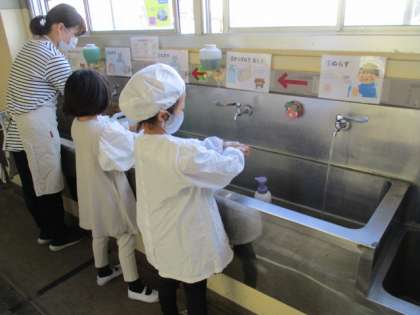 10/18 今日のあわあわゴッシーさん 公開日 2022/10/18 更新日 2022/10/18 保健室 給食前の手洗いタイムです。今日もすてきなあわあわゴッシーさんがいました。石けんをしっかり泡立てて、すみずみまでゴシゴシしていました。ぴかぴかの手になって、給食準備を始めます。