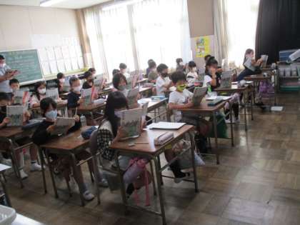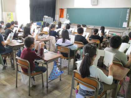 国語の授業で「モチモチの木」の音読をしました。登場人物の気持ちが伝わるように、抑揚を意識して読みました。読み進めるうちに、声のトーンがそろってきて、体育祭のソーランの表現の演技が思い出されてきました。情景や登場人物の気持ちとともに、みんなで音読する楽しさが伝わってきました。