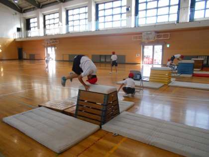 今日は、よりスムーズに、美しく台上前転をするためのこつを教えてもらい、練習をしました。