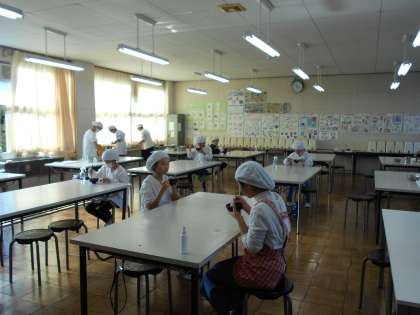 学級を二つに分けて行う、自分の分は自分で作る、など、感染症対策を万全にして行いました。
