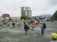 写真は1年生の準備の様子です。とりから揚げは、子どもの手のげんこつくらいの大きさで、とても食べ応えがありました。から揚げに負けないくらい大きな口を開けて食べ、大満足でした。