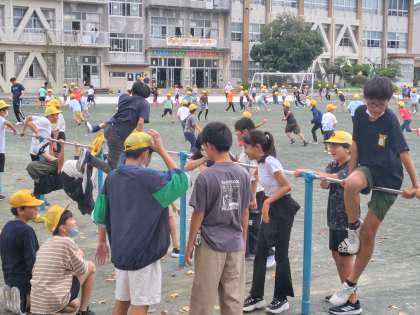 10/15 今日の昼放課(先生と遊ぼう!) 公開日 2024/10/15 更新日 2024/10/15 神山っ子 日記 今日の昼放課、先生と子どものようすです。 先生は子どもたちと一緒に遊ぶ時間を大切にしています。子どもたちがドッジボールをやっているの見守っていたり、一緒に真剣に勝負したりしている先生がたくさんいました。またブランコや鉄棒の周りにも先生と楽しく話をしている子どもたちがいました。 先生も子どもたちも笑顔です!