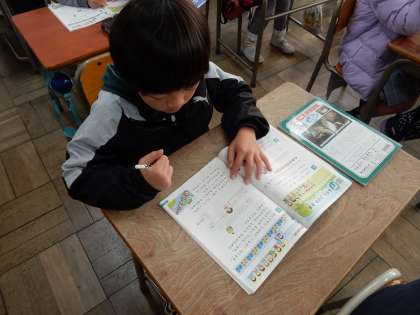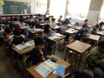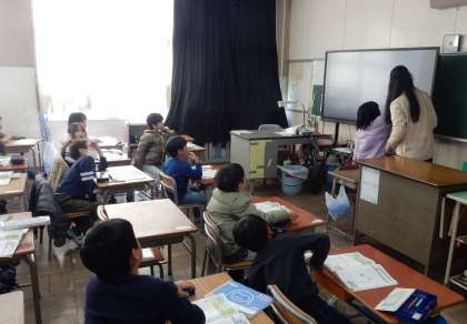 算数の授業で、数え方の学習をしています。「前から何番め」や「後ろから何番め」など、どこから順番に数えるのかを確認し、全体や前後の人数を調べました。分かっている情報をイラストにかきこんだり図に表したりすると、整理されて分かりやすくなることを実感しながら学んでいました。