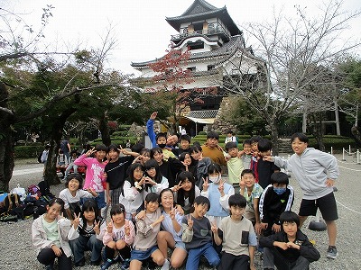 校外学習の学級写真です。