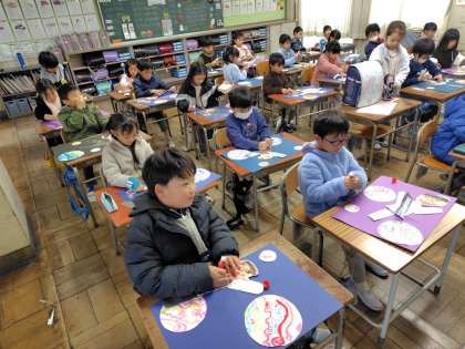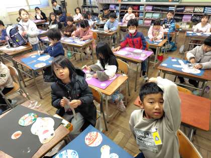 12/11 今日の授業風景 1年生編 公開日 2024/12/11 更新日 2024/12/11 1年生 1年生の図工の授業のようすです。「天の川をかこう」というめあてで学習を進めていました。自分がイメージする天の川にするために、形や構図などを一生懸命に考えていました。先生が一人ひとりに励ましやアドバイスをすることで、子どもたちはやる気を高めていました。