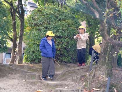 12/11 今日の大放課「かみやまのもり」 公開日 2024/12/11 更新日 2024/12/11 神山っ子 日記 今日の大放課のようすです。 かみやまのもりの頂上は運動場が一望でき最高です。子どもたちはお気に入りの場所あるようです。学習チュータ(教員を目指す学生ボランティア)が走っている子に「危ないよ!走らないでください。」と声をかけていました。少し雨がパラパラ降っていますが、気になることはありません!