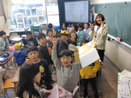 12/12 今朝の1年生の教室「先生も笑顔!」