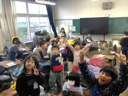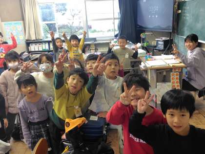 1年生の学級をまわって、「おはよう!元気ですか? 」と声をかけると「ハーイ」と返事が返ってきました。先生は子どもたちが来る前に教室で待って、1日がうまくスタートをきることができるようにしています。不安な顔をしていると先生が笑顔で声をかけてくれるので頑張れるようです。