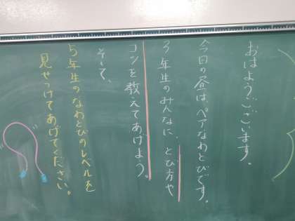 12/13 今朝の黒板「ペアなわとび!」