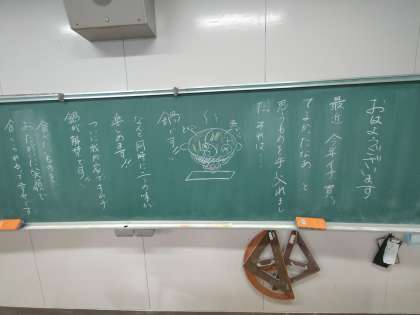 毎朝、黒板にメッセージを書いてある学級が多くあります。昨日までの懇談会では、2学期に成長したことをお伝えさせていただきました。これからも様々な機会で「互いを認め合い、励ましながら前に進んでほしい!」という思いを伝えていきます。