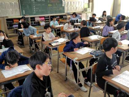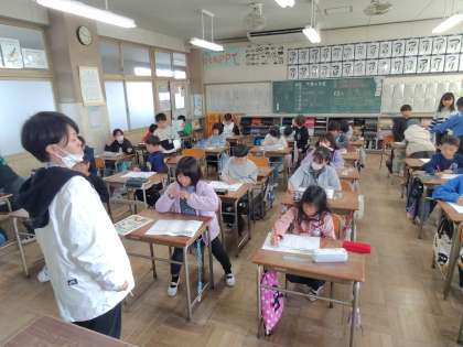 12/13 今日の授業風景 3年生編 公開日 2024/12/13 更新日 2024/12/13 3年生 3年生の国語の授業のようすです。今日は「ローマ字を書く練習をしよう」というめあてで学習をしていました。一生懸命にローマ字を書いている姿がみられました。また、この学級は先生から問題が出されると、子どもたちはパッと手があがります。