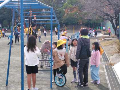12/13 今日の大放課(先生も一緒) 公開日 2024/12/13 更新日 2024/12/13 神山っ子 日記 今日の大放課、先生と子どものようすです。 先生は子どもたちと一緒に遊ぶ時間を大切にしています。先生と一緒になわとびを行っている子がたくさんいます。また、ドッジボールを真剣にやっている先生や一輪車の練習を補助している先生もいました。子どもたちも先生も笑顔です!