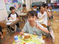 図画工作の時間です。家にあった空き箱や牛乳パック、ゴムなどを使って、カラフルな楽器を作っています。音を鳴らすだけでなく、糸やテープなどで飾りつけもしています。素敵な楽器がいっぱいできていました。