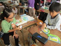 国語の「スイミー」の中で好きな場面について考えました。「1場面はみんな幸せそうだから好きです。」「5場面はみんなで大きな魚をやっつけたからすごいです。」など、どうして好きなのか、理由をしっかりと友達に伝えることができていました。