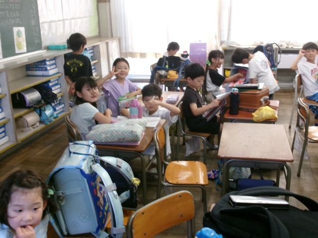 今朝の1年生教室のようすです。毎朝、先生が子どもたちが教室に入ってくる表情を確認しています。「おはよう~」と声をかけると多く子が笑顔を返してくれます。8時30分の暑さ指数は21.6、気温26.1度と涼しくて快適です。今日は「なかよしフェスティバル(異学年交流)」が計画されていますが最高の天気です。※下記の3枚目の写真の「+」をクリックすると、それ以外の笑顔が見られます。