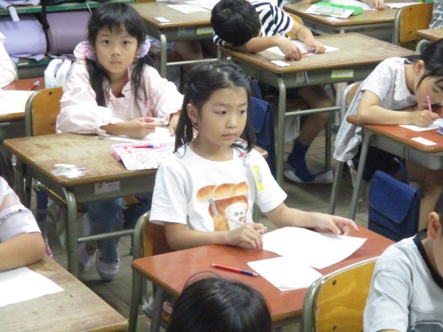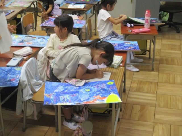 立派だったのは、片付けまできちんとやっていたこと。筆の先を整えてケースに入れたり、水入れの汚れをとったりしていました。手際よく進めている姿に成長を感じます。