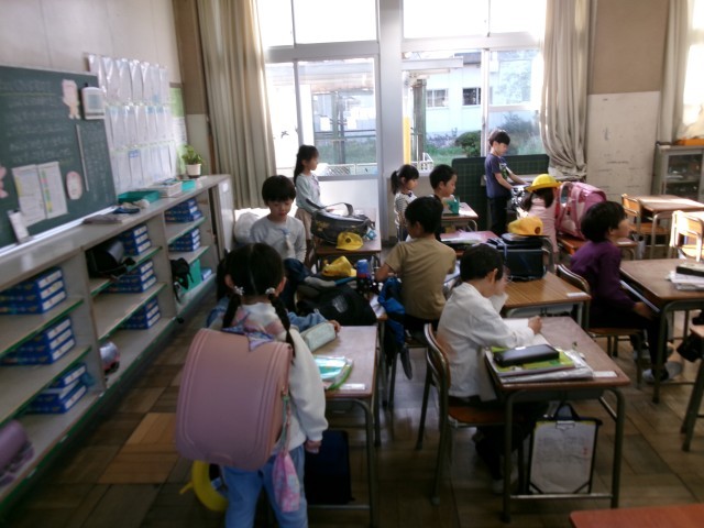 今朝の1年生教室のようすです。毎朝、先生が子どもたちが教室に入ってくる表情を確認しています。「おはよう~」と声をかけると多く子が笑顔を返してくれました。※下記の3枚目の写真の「+」をクリックすると、それ以外の笑顔が見られます。
