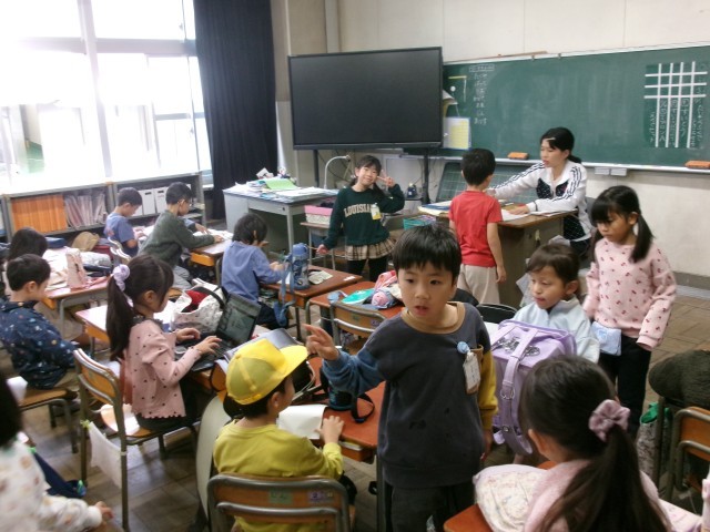 10/23 今朝 1年生の教室「先生も笑顔!」- 公開日