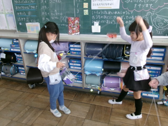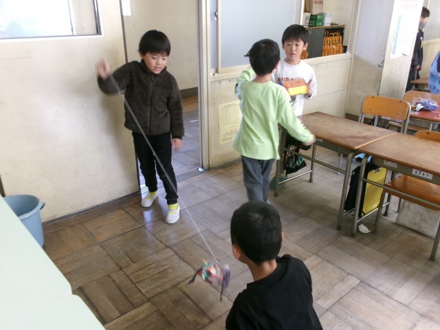 2年生の児童が作った楽しいおもちゃで仲良く遊びました。
