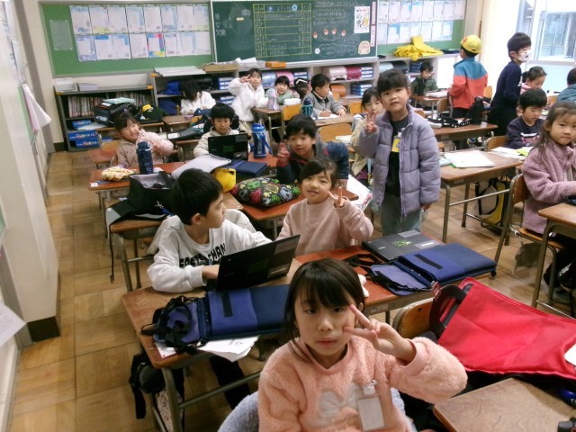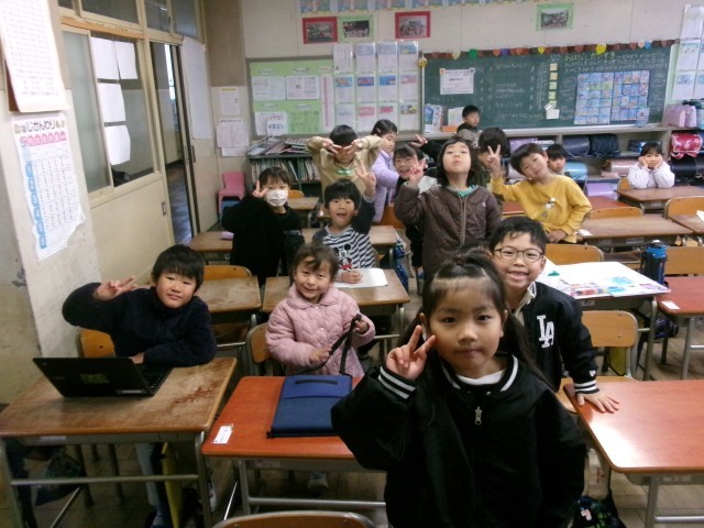 今朝の1年生教室のようすです。毎朝、先生が子どもたちが教室に入ってくる表情を確認しています。「おはよう~」と声をかけると多く子が笑顔を返してくれます。今朝は今年一番の寒さでしたが、防寒対策をしっかり行って登校することができました。※3枚目写真の「+」をクリックすると、そ以外の笑顔を見ることができます。