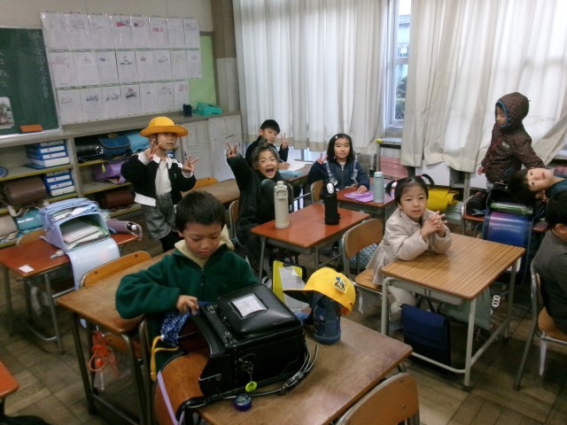 11/18 今朝 1年生の教室「みんな笑顔!」
