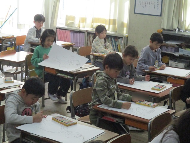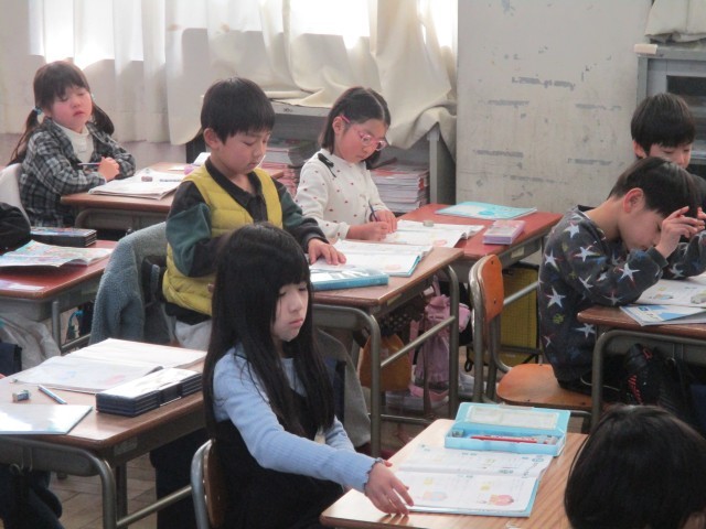 2/4 今朝 1年生の教室「みんな笑顔!」